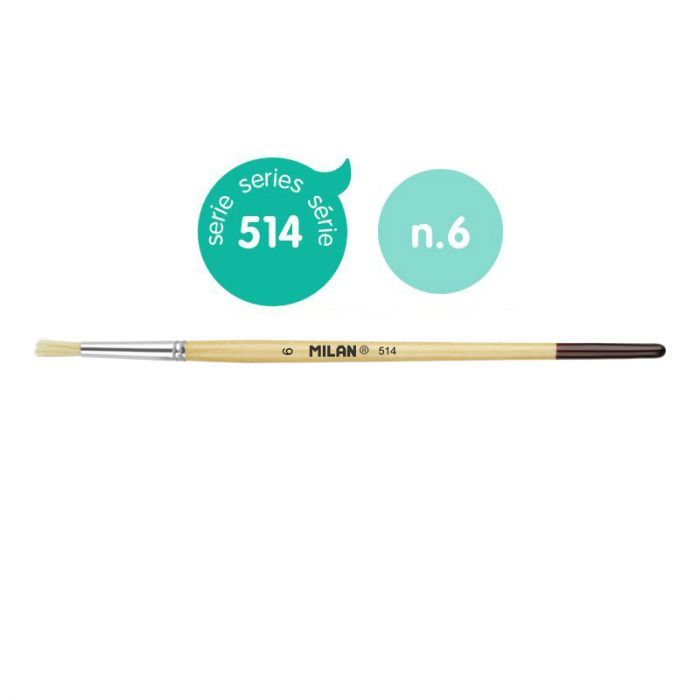 Okrągły pędzel serii 514 nr 6 ze szczeciny Chungking o wysokiej odporności i trwałości. Nadaje się kleju, lakierów, tempery i gęstej farby. ergonomiczny krótki drewniany trzonek polakierowany w kolorze naturalnego drewna sosnowego. Aluminiowa skuwka, odporna na rdzewienie. Idealne do użytku szkolnego. Średnica włosia: 4,6 mm. Długość włosia: 14,3 mm. Długość pędzla: 185 mm.