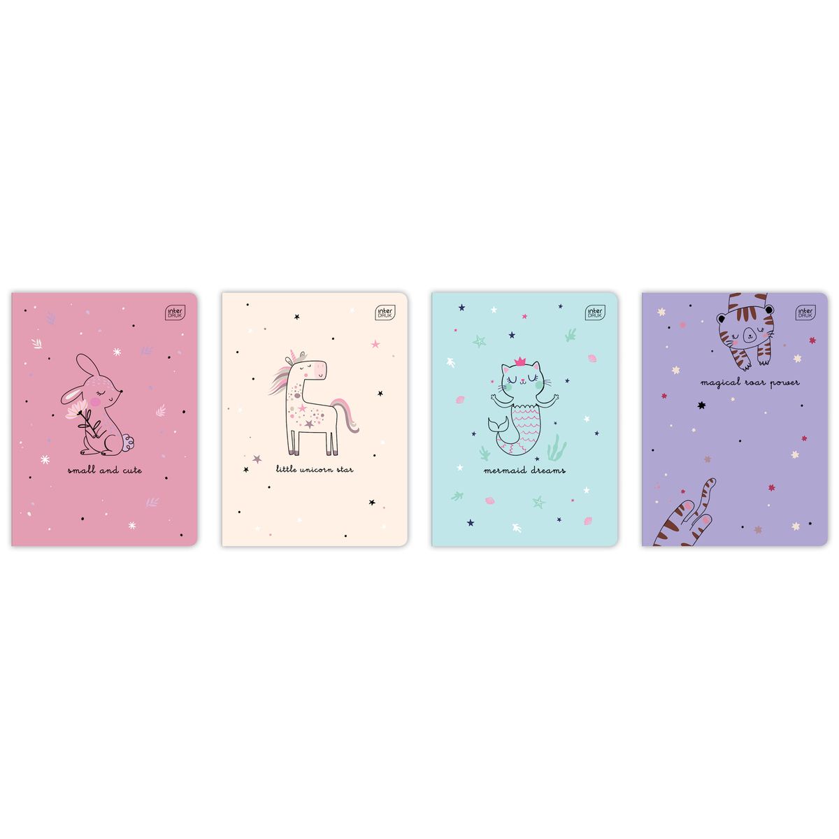 Format: A5. Liczba kartek: 16. Zadruk w kolorową kratkę. Zaokrąglone rogi. Okładka pokryta lakierem UV. Przydatne pomoce dydaktyczne na odwrocie zeszytu: ściąga z języka angielskiego i tabliczka mnożenia.