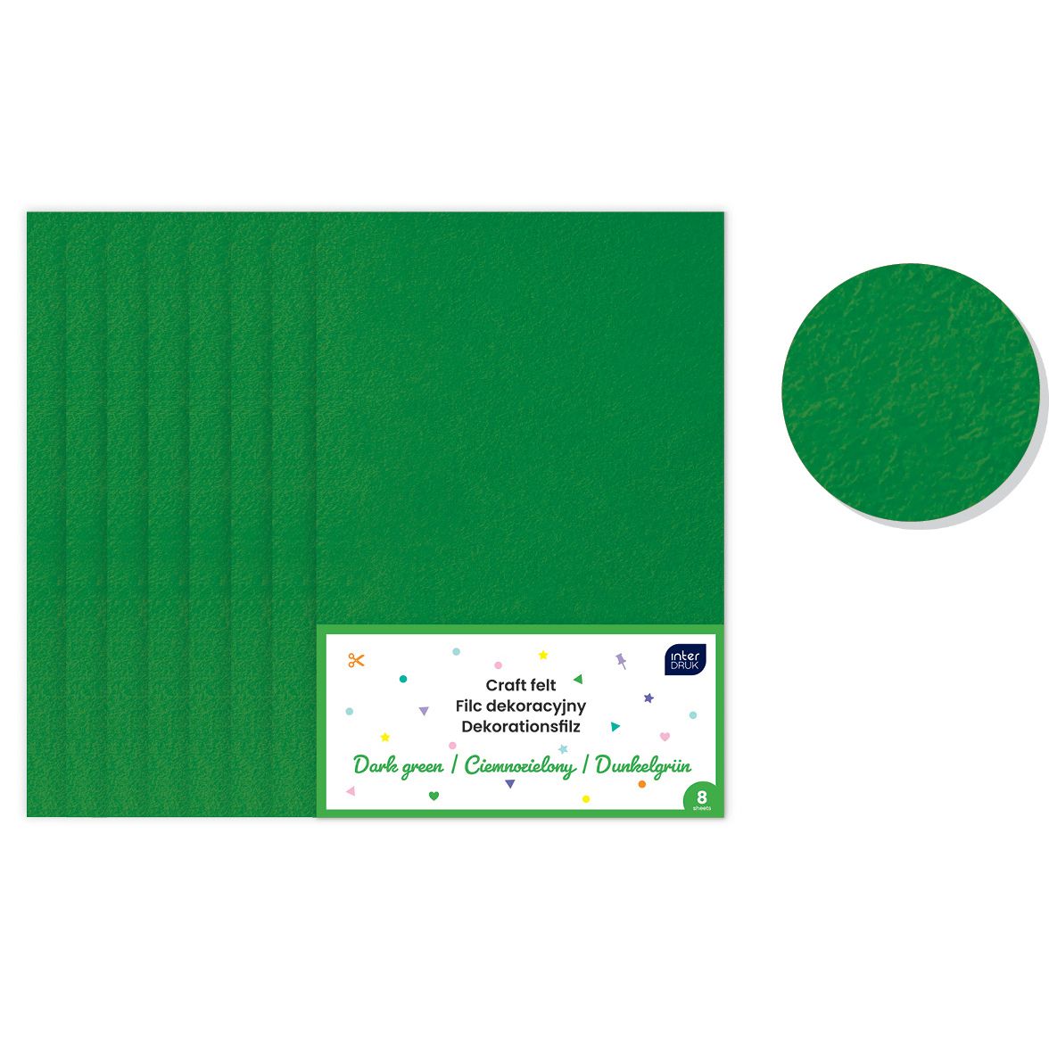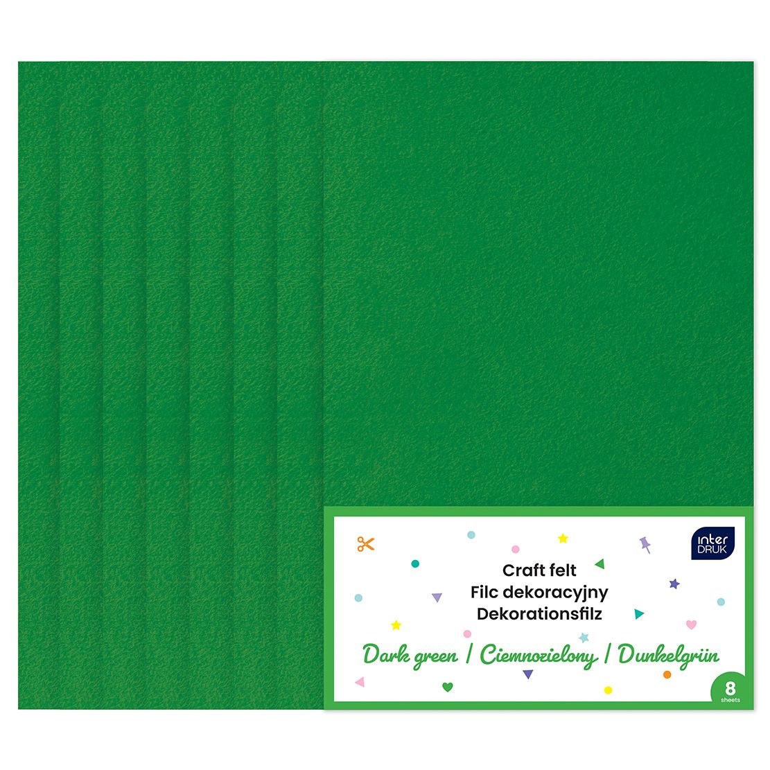 Opakowanie zawiera 8 arkuszy filców w rozmiarze A4 w ciemnozielonym kolorze.