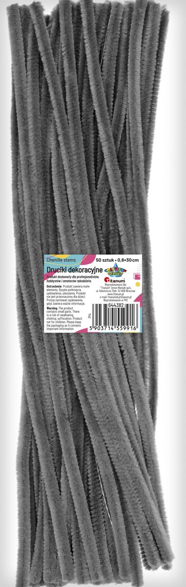Druciki kreatywne, kolor: szary, długość: 30 cm, szerokość: 0,6 cm. 50 sztuk.