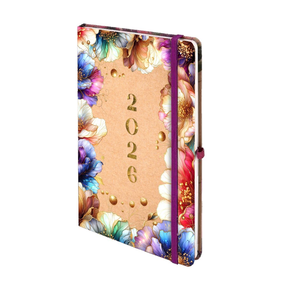 Kalendarz książkowy (terminarz) 2026 KRAFT TNS A5 Antra (KWIATY)