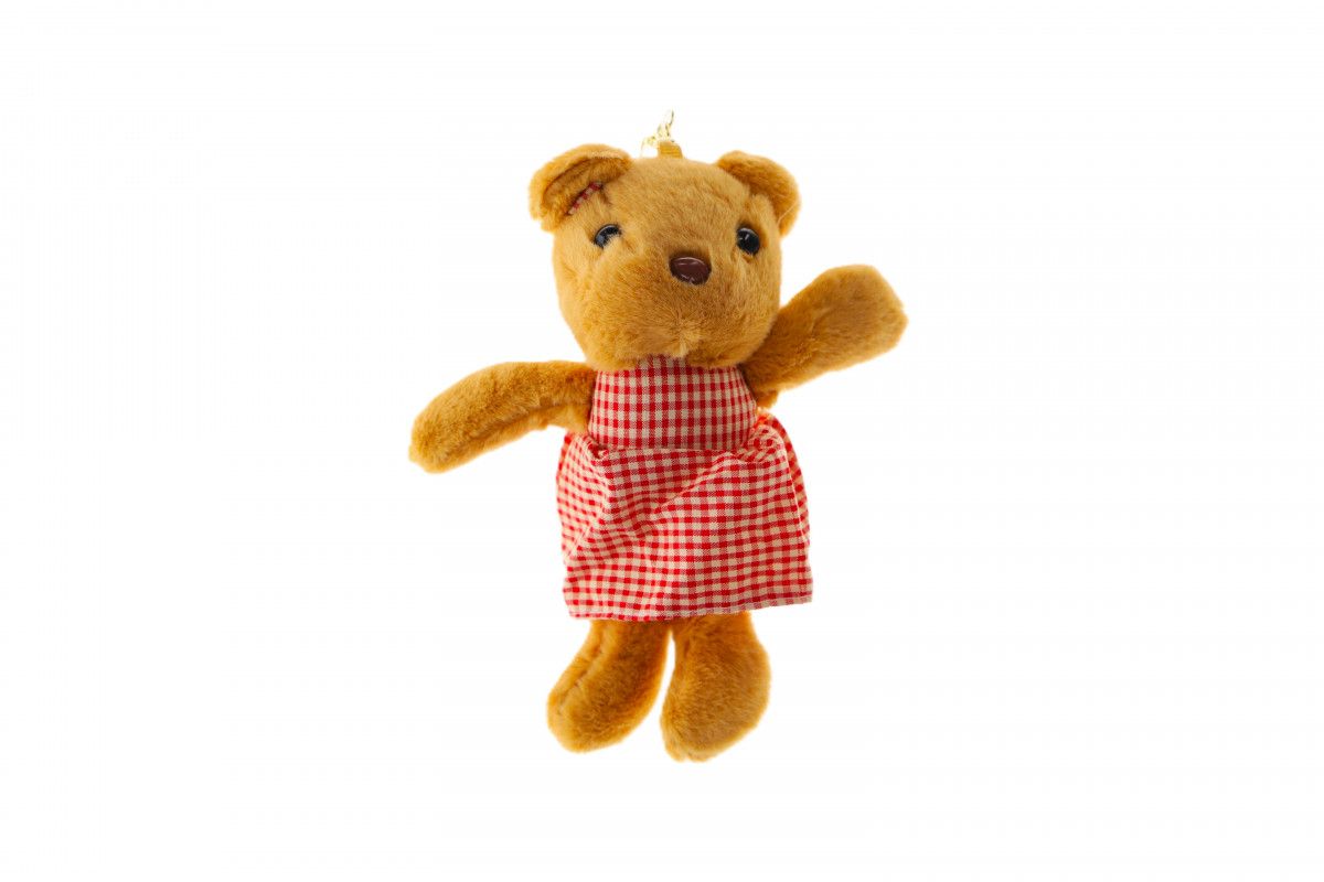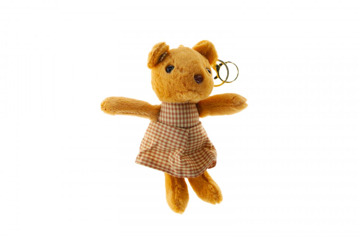 Brelok miś w sukience.
