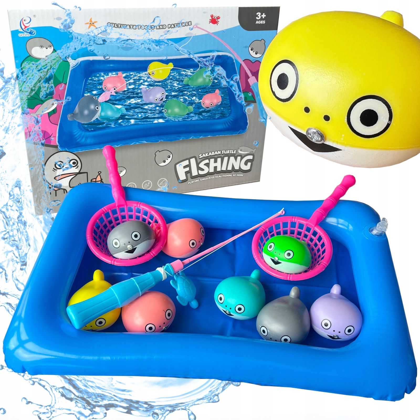 ZESTAW DO ŁOWIENIA RYBEK NA MAGNES – ZABAWKA WODNA DLA DZIECI 3+ | BASEN + RYBKI + WĘDKI + POMPKA + SITKA