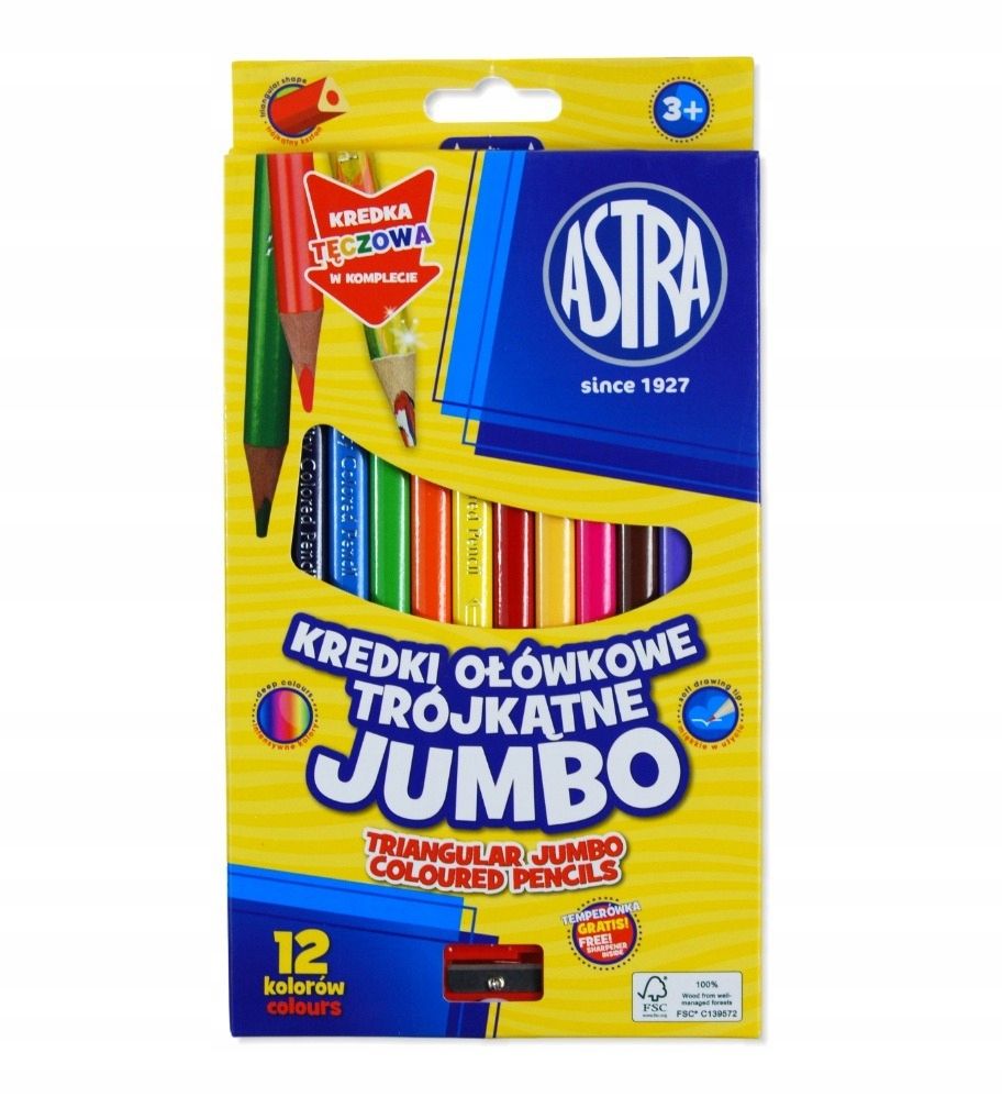 Kredki ołówkowe trójkątne Jumbo 12 kolorów Astra