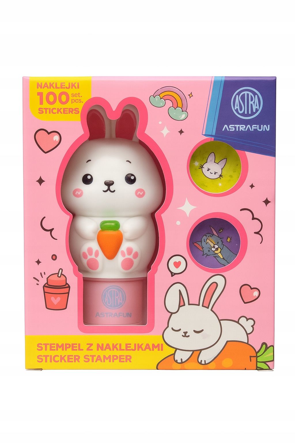 Stempel z naklejkami – 100 naklejek wielokrotnego użytku ASTRAFUN + książeczka – Królik.