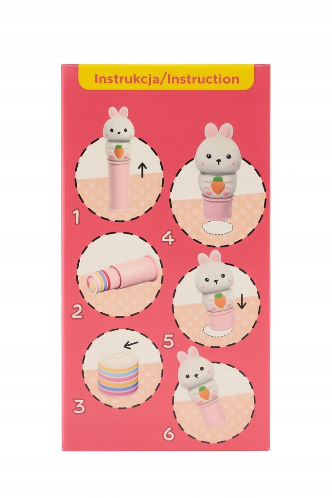 Zawartość zestawu: stempel w kształcie uroczego króliczka, 100 kolorowych naklejek wielokrotnego użytku, książeczka do kreatywnej zabawy